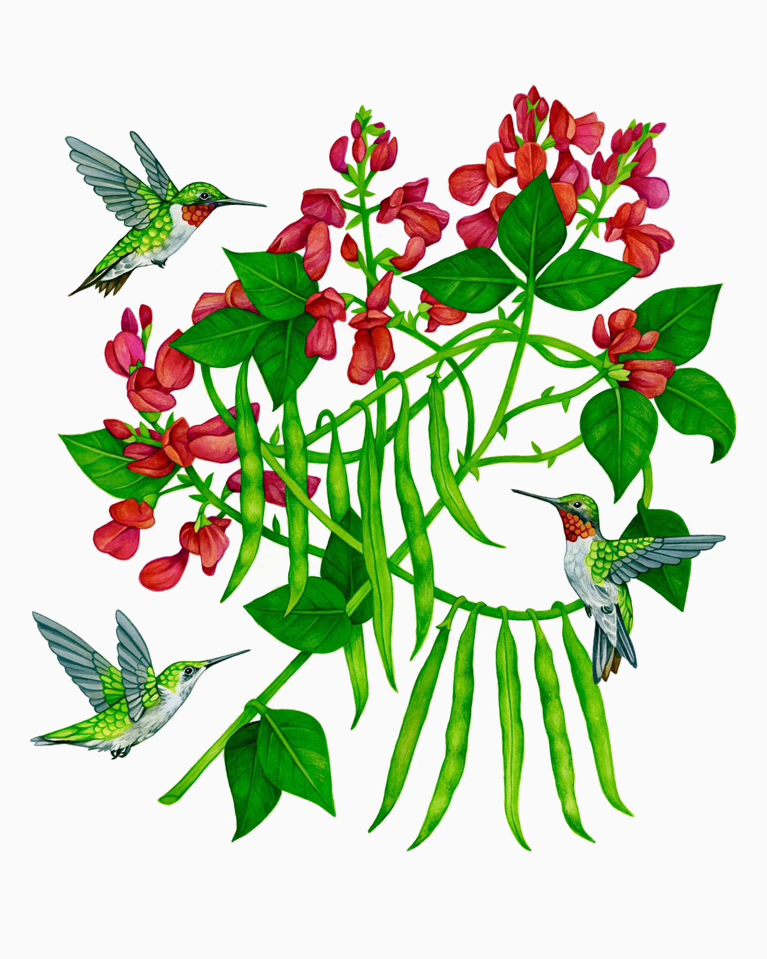 This was my design submission for then 2026 Common Ground Fair poster and it was lovely to have been a finalist! Scarlet Runner Beans are a versatile plant for the garden that produce beans for us as well as vibrant red flowers that the hummingbirds and other pollinators love.
